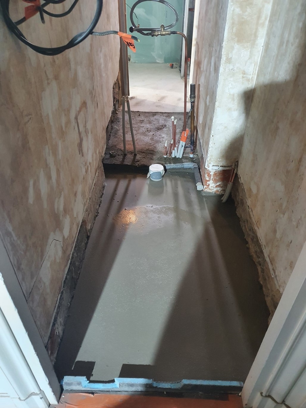 Rénovation des sols (carrelage et ponçage et vernissage des parquets), des murs (peinture et faïence), des plafonds (peinture et création de faux-plafond), réfection du réseau de chauffage en tube cuivre.