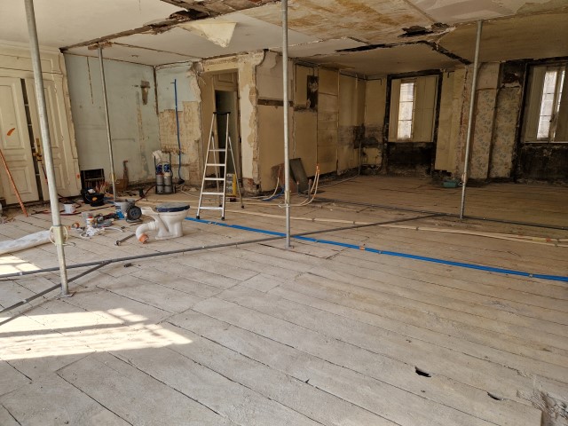 Travaux réalisés avec le bureau d’études Bel Flores qui a réalisé les plans (état des lieux et projet) puis qui a coordonné les travaux des différentes entreprises présentes.